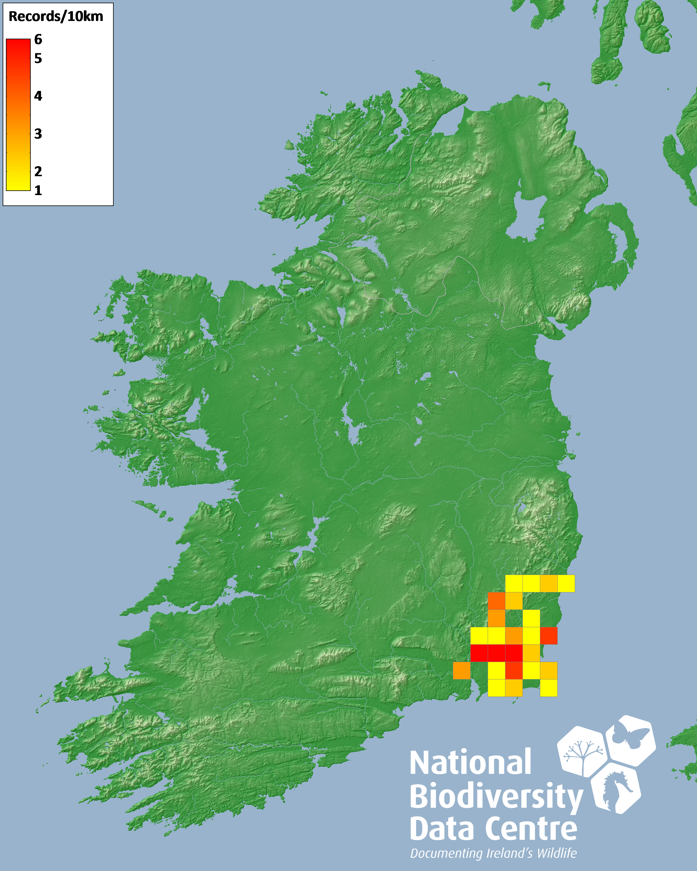 Distribution of the number of records recorded within each 10km grid square (ITM).Marine Map - 50km