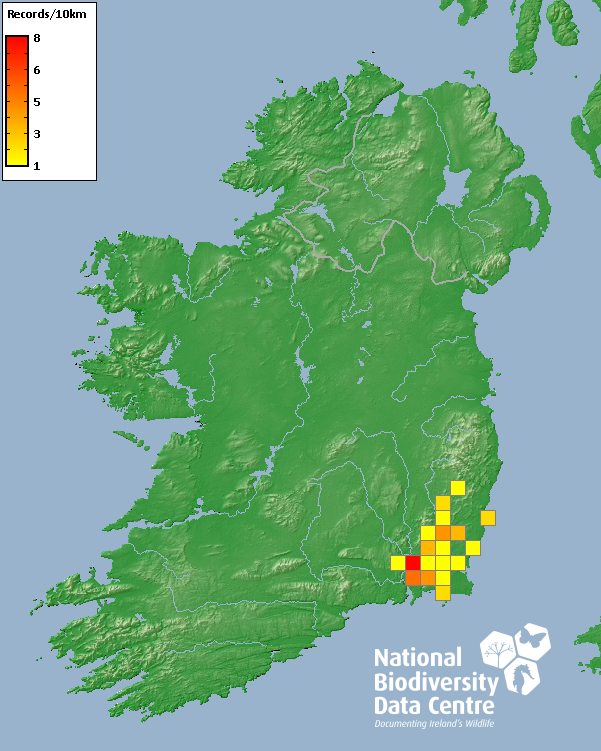 Distribution of the number of records recorded within each 10km grid square (ITM).Marine Map - 50km