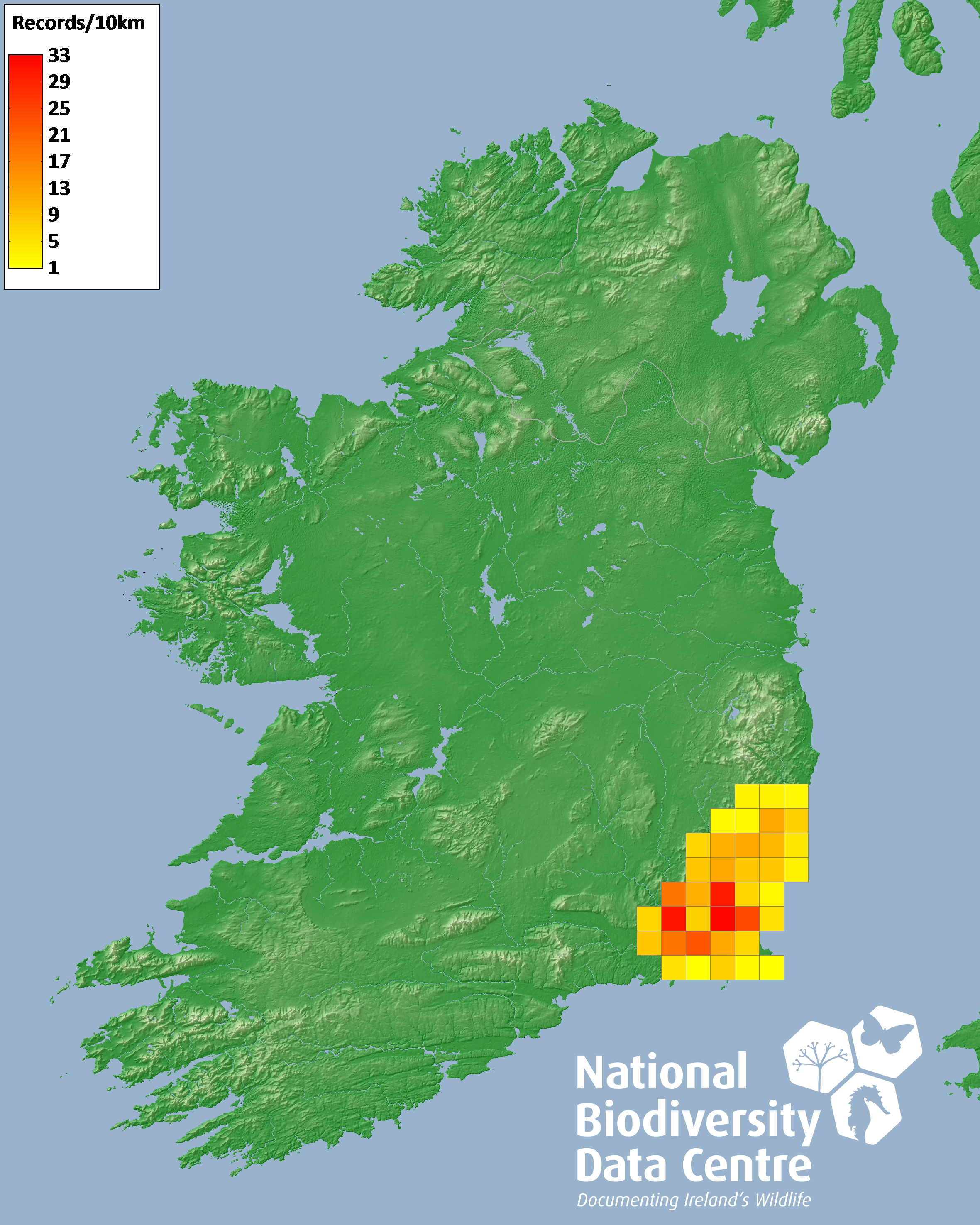 Distribution of the number of records recorded within each 10km grid square (ITM).Marine Map - 50km