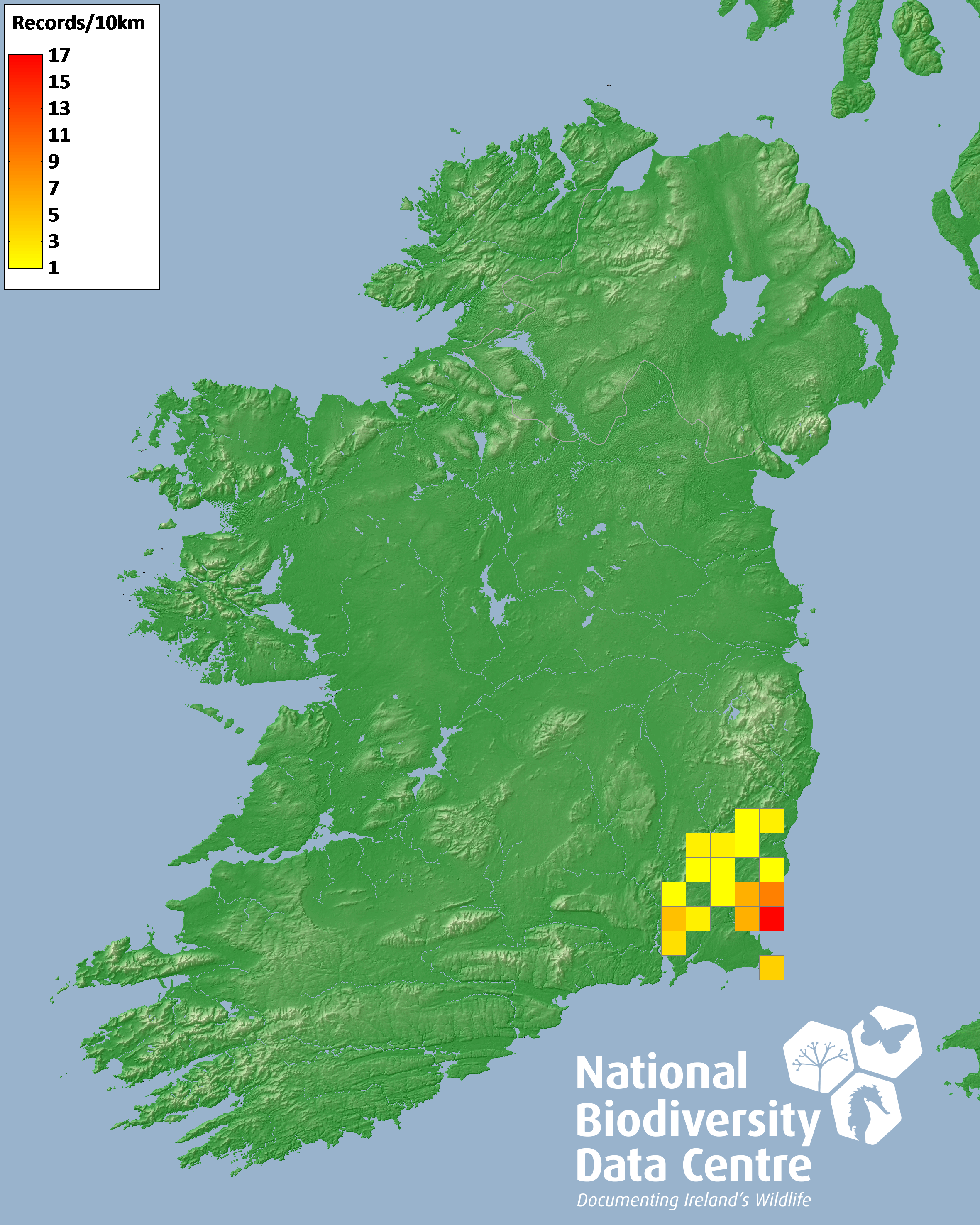 Distribution of the number of records recorded within each 10km grid square (ITM).Marine Map - 50km