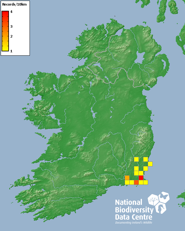 Distribution of the number of records recorded within each 10km grid square (ITM).Marine Map - 50km