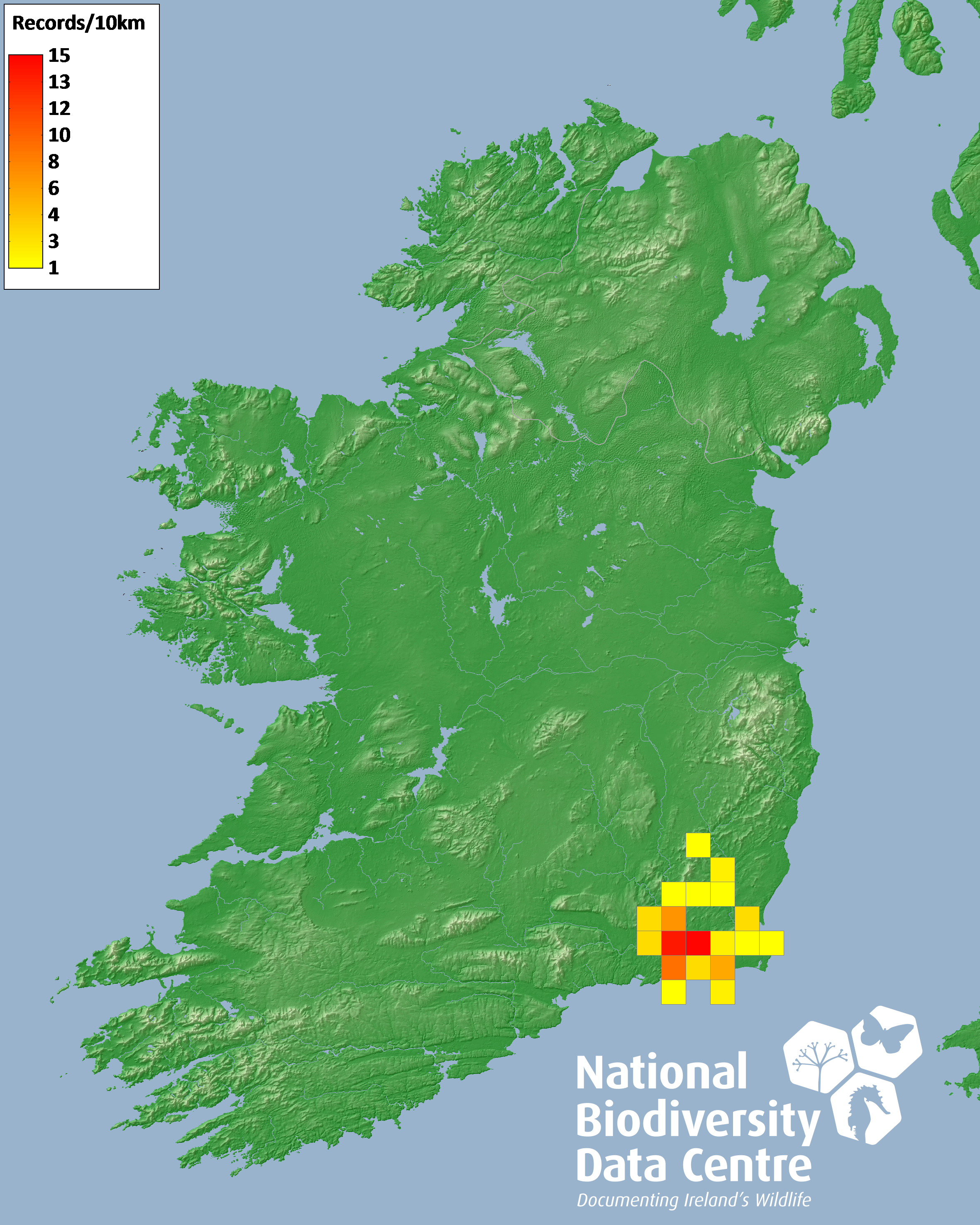 Distribution of the number of records recorded within each 10km grid square (ITM).Marine Map - 50km