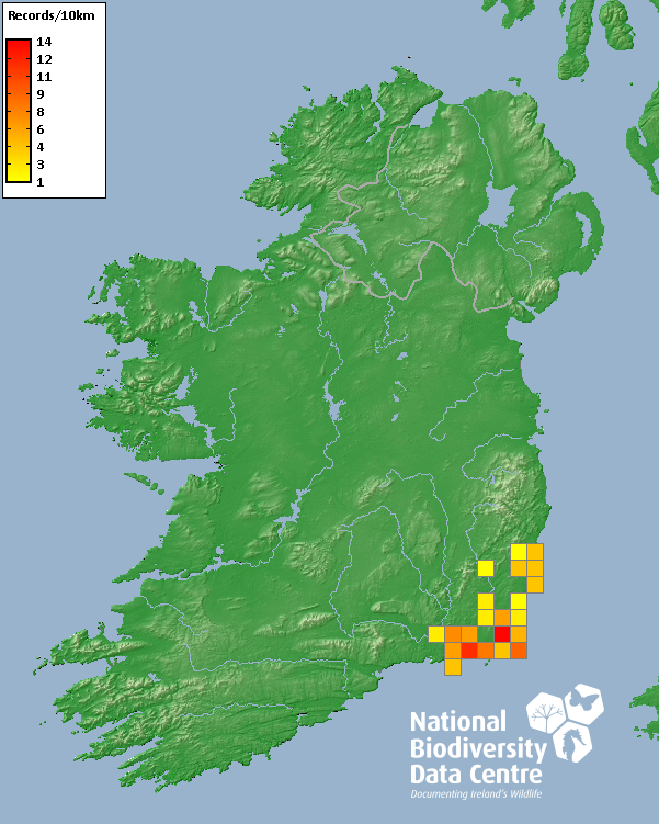 Distribution of the number of records recorded within each 10km grid square (ITM).Marine Map - 50km
