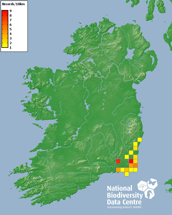 Distribution of the number of records recorded within each 10km grid square (ITM).Marine Map - 50km