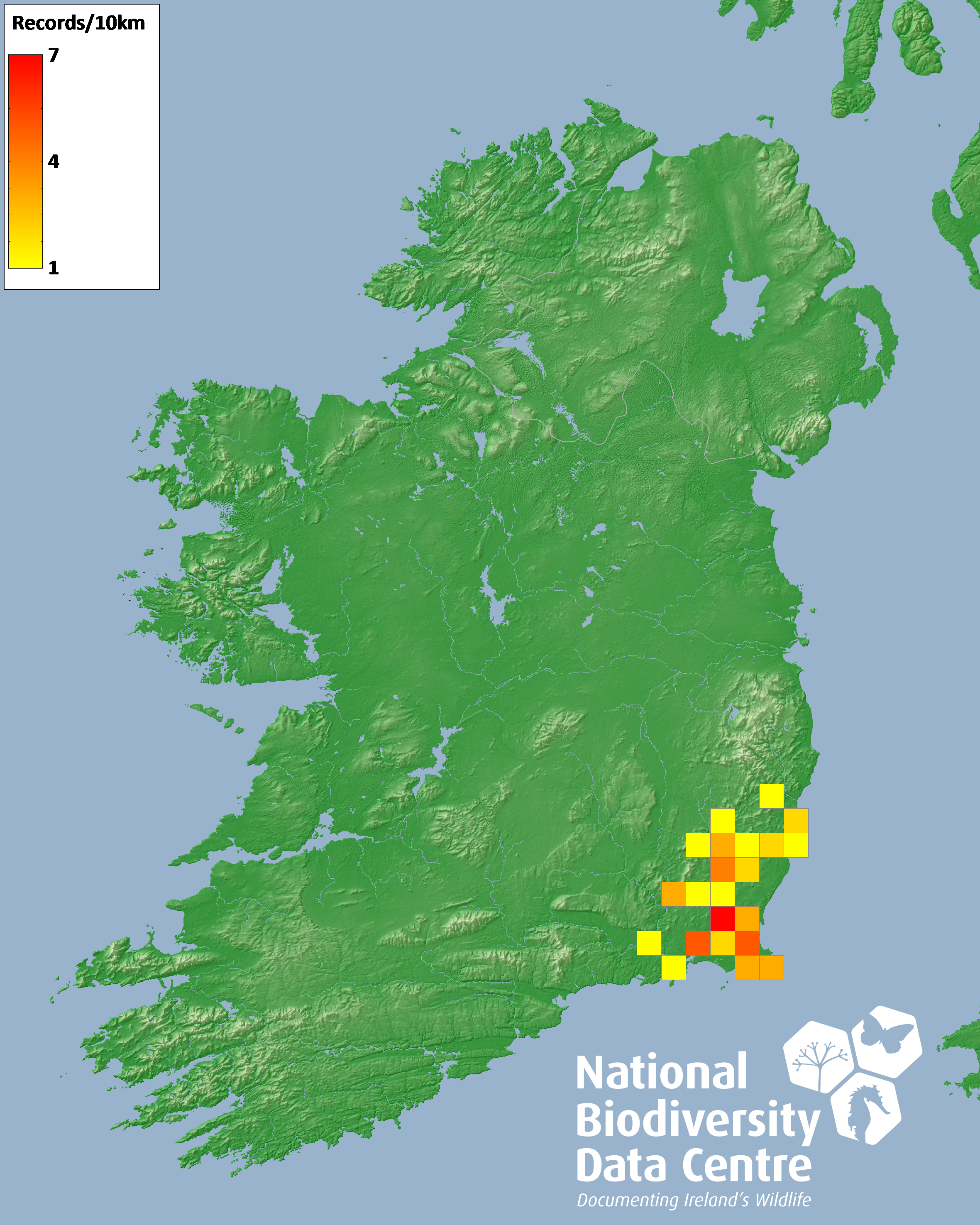 Distribution of the number of records recorded within each 10km grid square (ITM).Marine Map - 50km