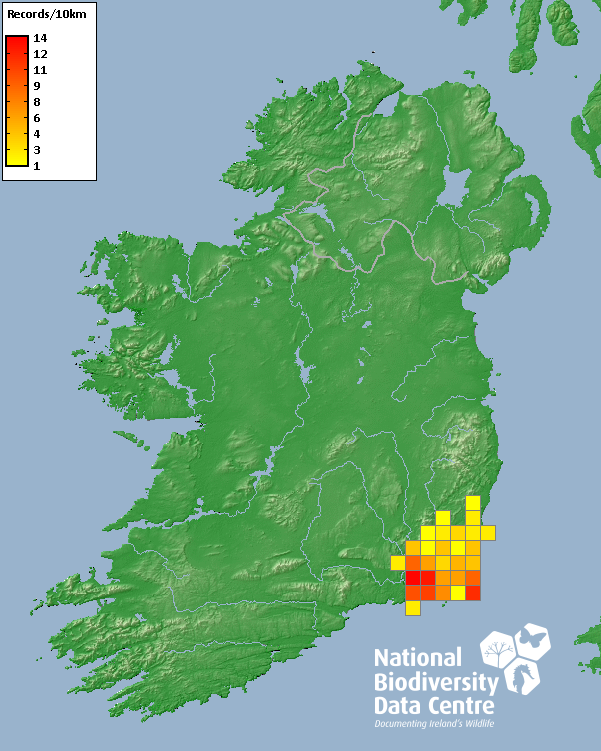 Distribution of the number of records recorded within each 10km grid square (ITM).Marine Map - 50km