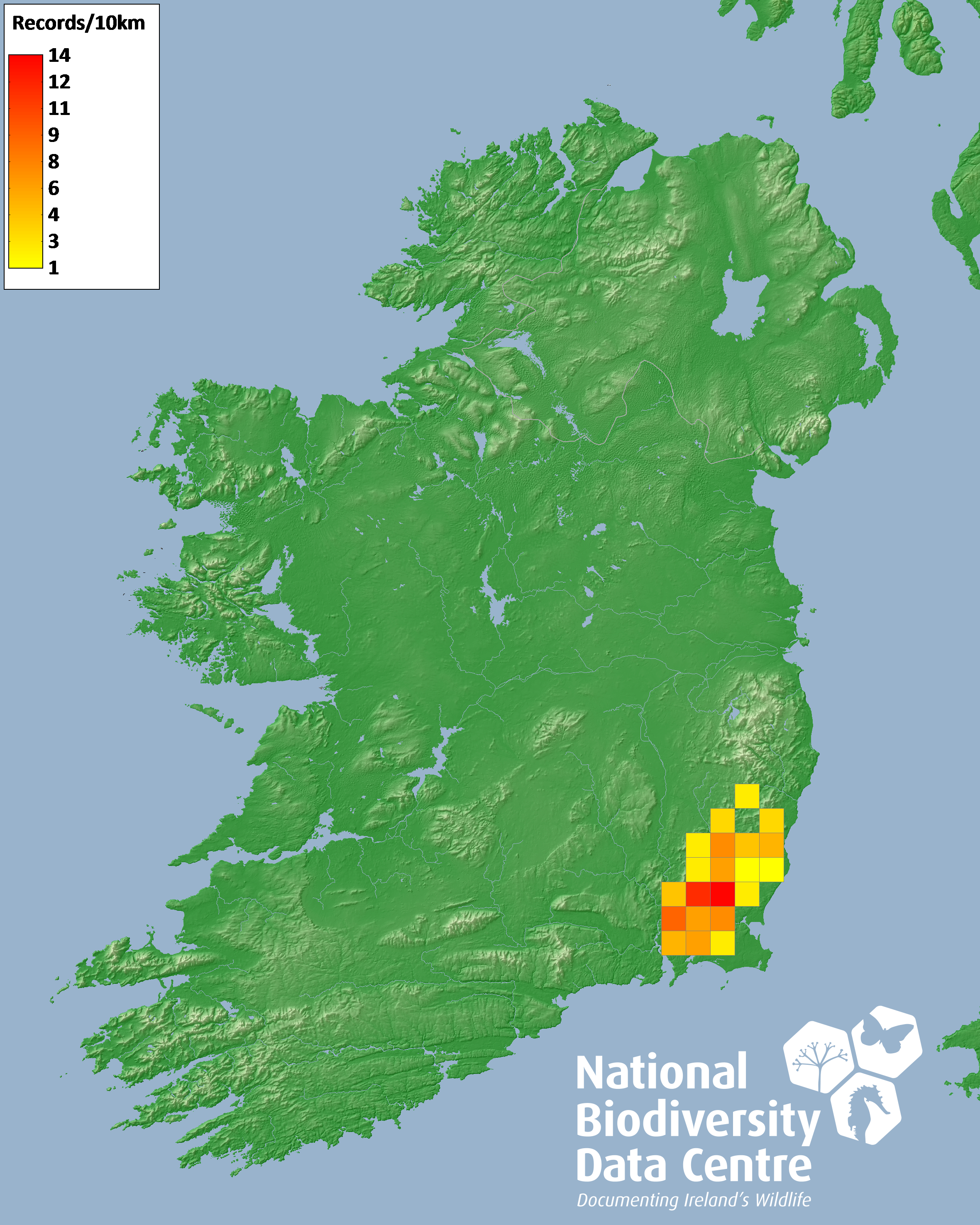 Distribution of the number of records recorded within each 10km grid square (ITM).Marine Map - 50km