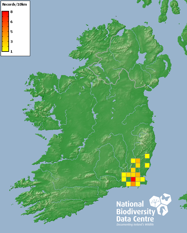 Distribution of the number of records recorded within each 10km grid square (ITM).Marine Map - 50km
