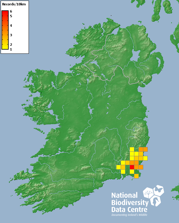 Distribution of the number of records recorded within each 10km grid square (ITM).Marine Map - 50km