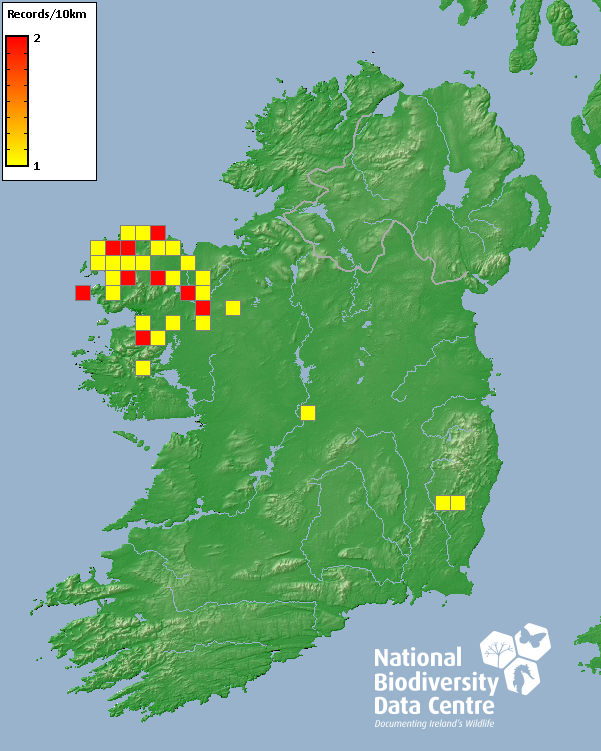 Distribution of the number of records recorded within each 10km grid square (ITM).Marine Map - 50km