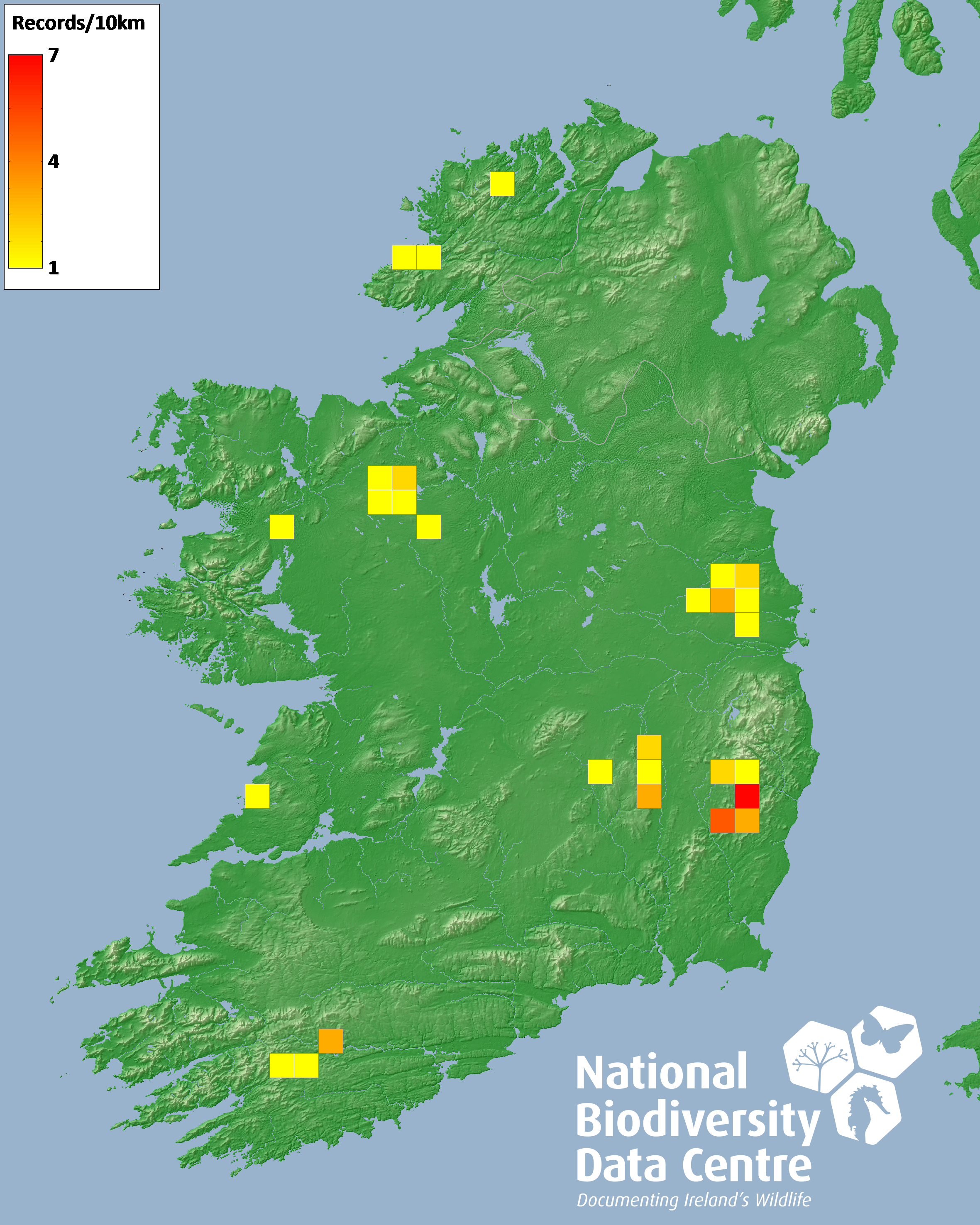Distribution of the number of records recorded within each 10km grid square (ITM).Marine Map - 50km