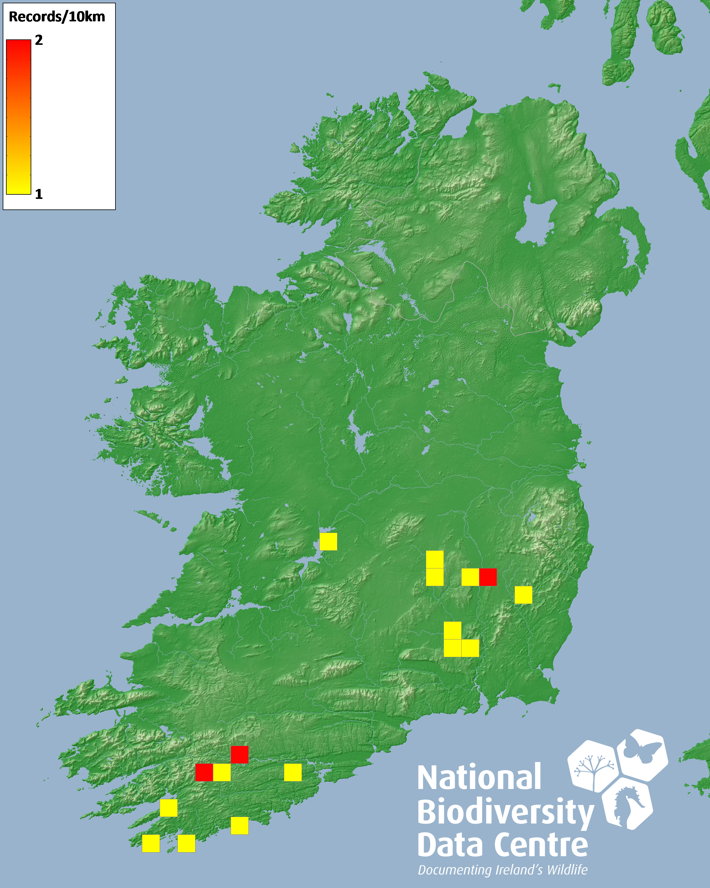 Distribution of the number of records recorded within each 10km grid square (ITM).Marine Map - 50km