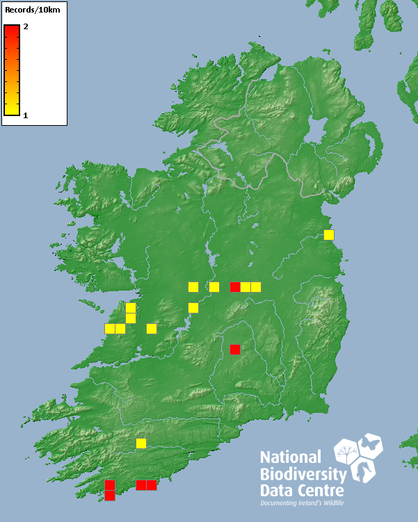 Distribution of the number of records recorded within each 10km grid square (ITM).Marine Map - 50km