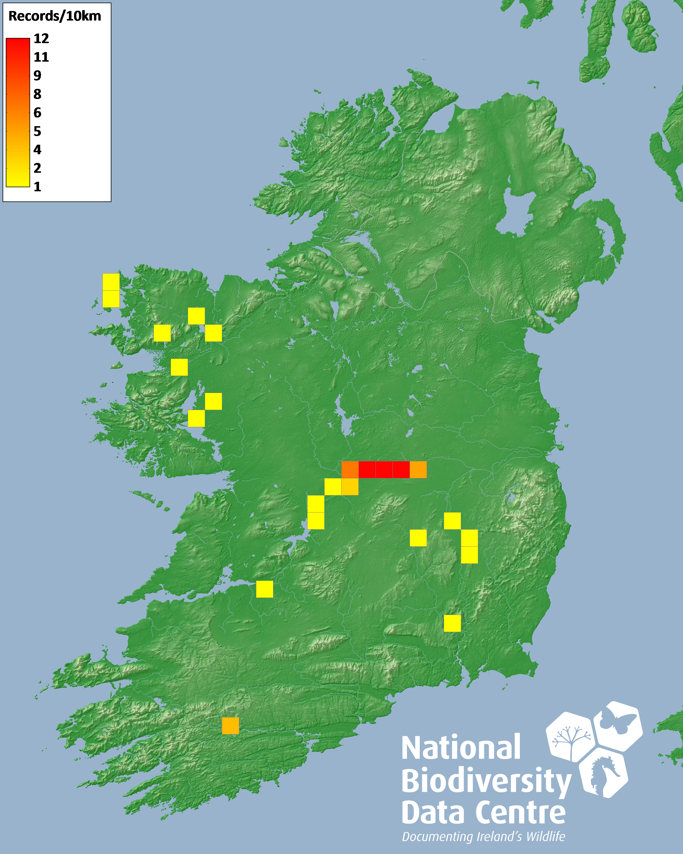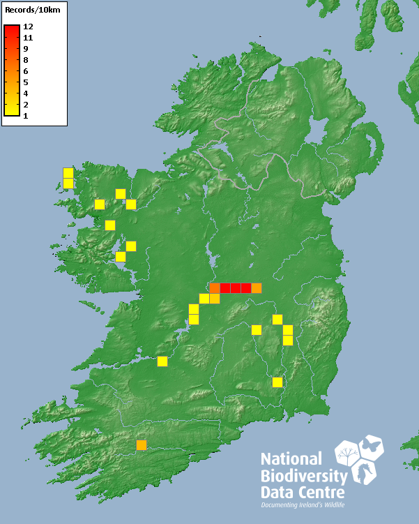 Distribution of the number of records recorded within each 10km grid square (ITM).Marine Map - 50km