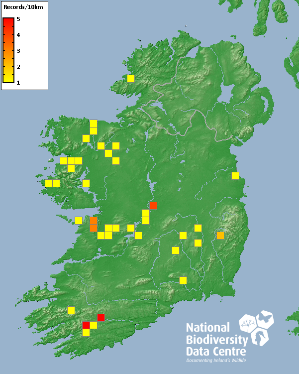 Distribution of the number of records recorded within each 10km grid square (ITM).Marine Map - 50km