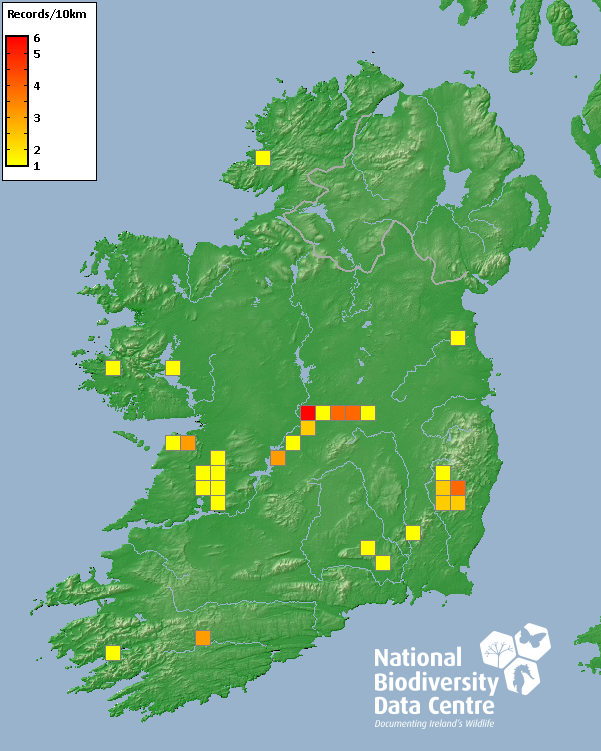 Distribution of the number of records recorded within each 10km grid square (ITM).Marine Map - 50km