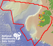 Distribution of the number of records recorded within each 10km grid square (ITM).Marine Map - 50km