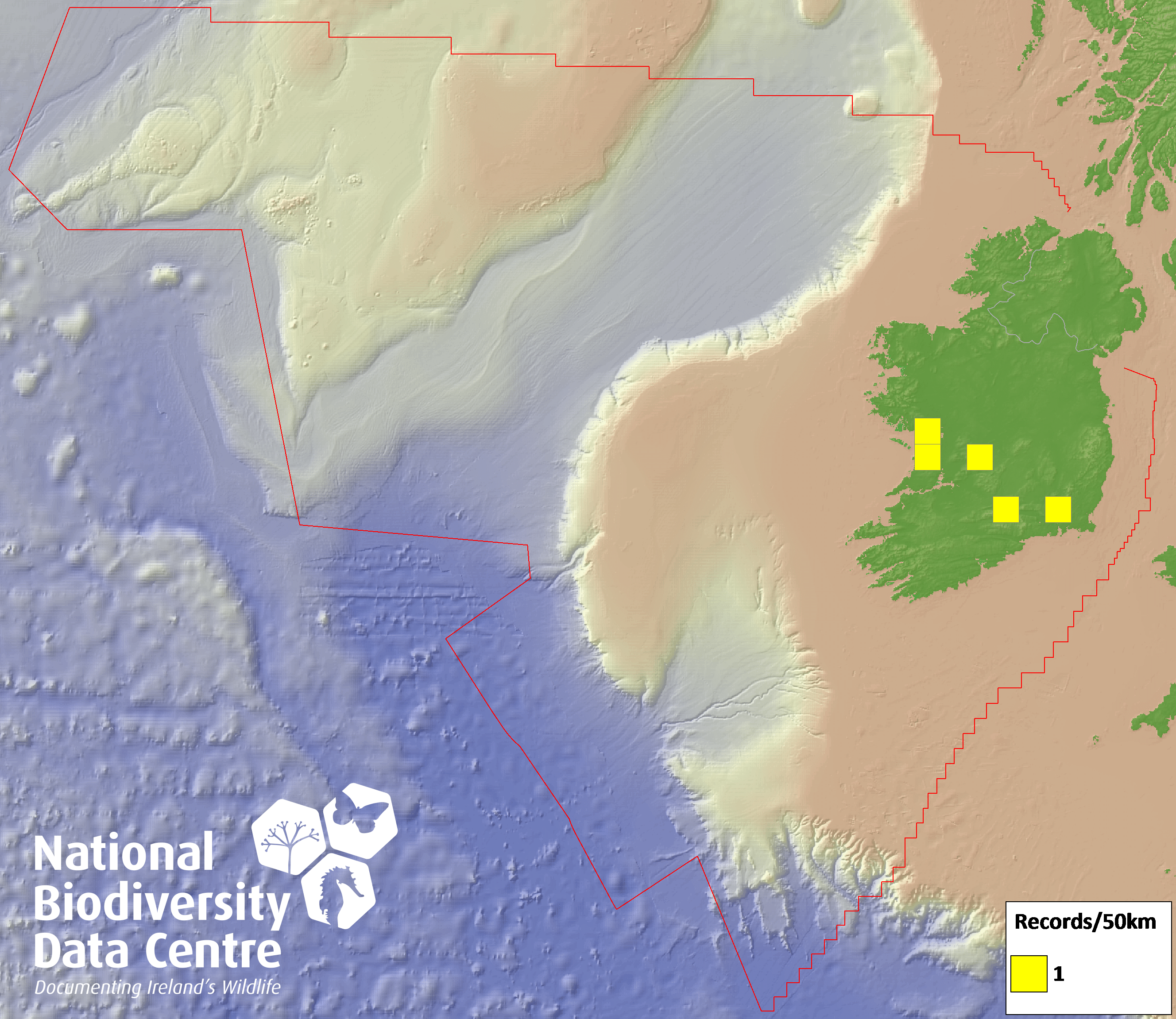 Distribution of the number of records recorded within each 10km grid square (ITM).Marine Map - 50km