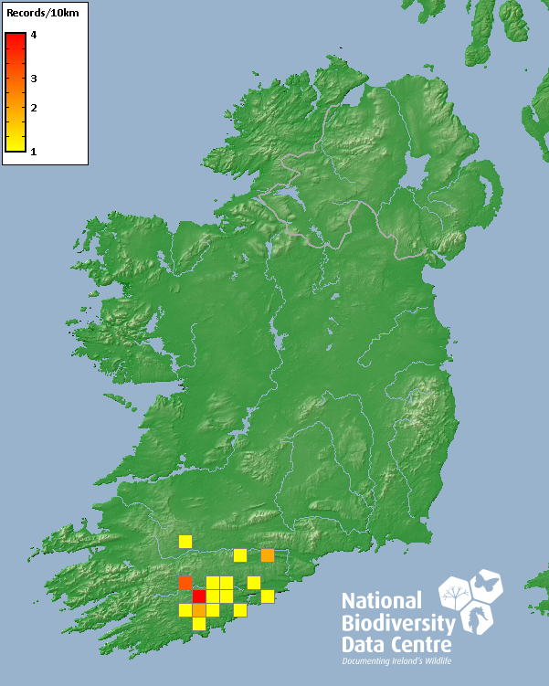 Distribution of the number of records recorded within each 10km grid square (ITM).Marine Map - 50km