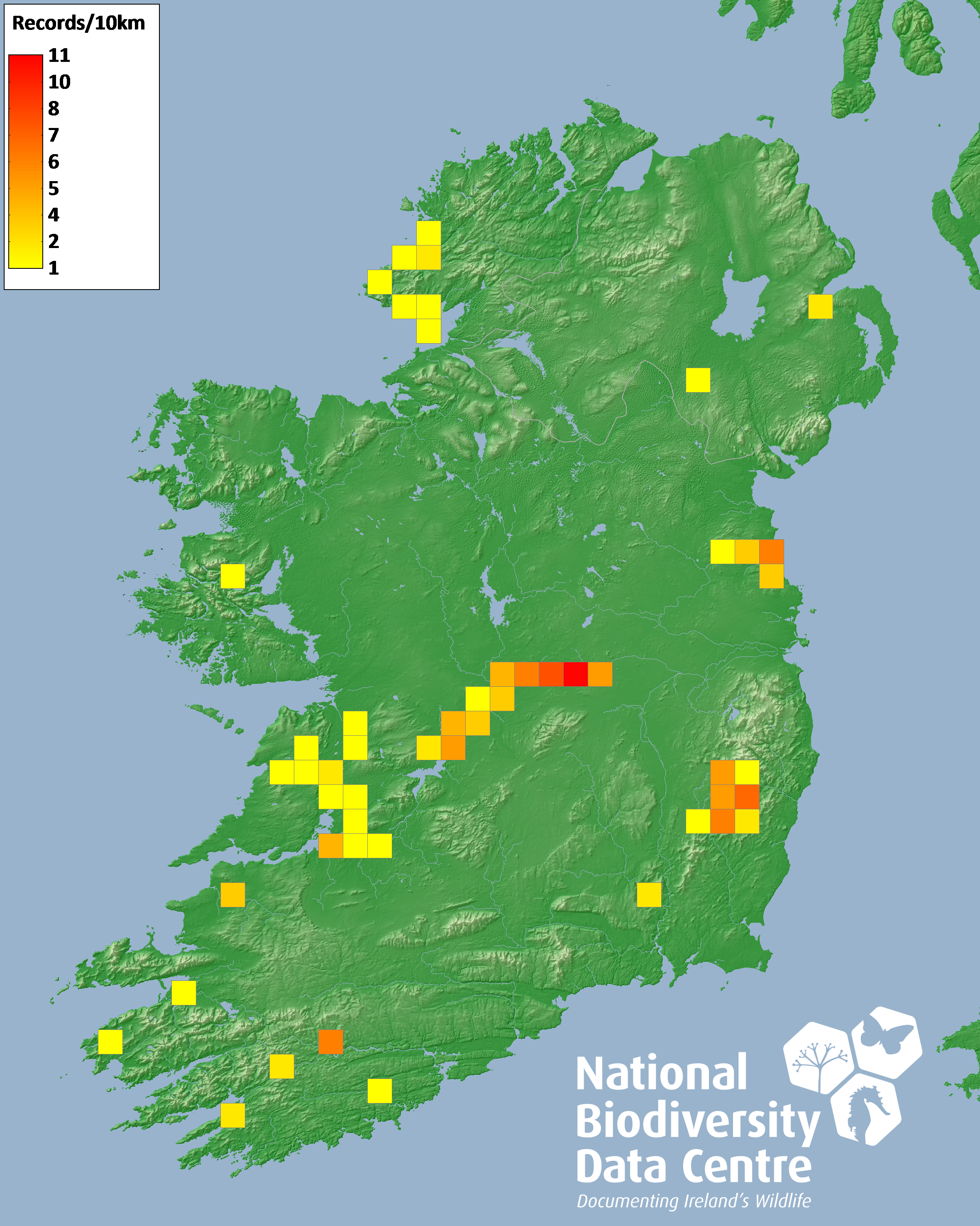 Distribution of the number of records recorded within each 10km grid square (ITM).Marine Map - 50km