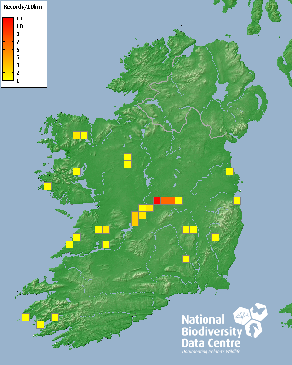 Distribution of the number of records recorded within each 10km grid square (ITM).Marine Map - 50km