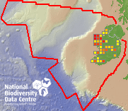 Distribution of the number of records recorded within each 10km grid square (ITM).Marine Map - 50km