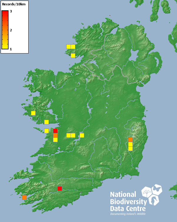 Distribution of the number of records recorded within each 10km grid square (ITM).Marine Map - 50km