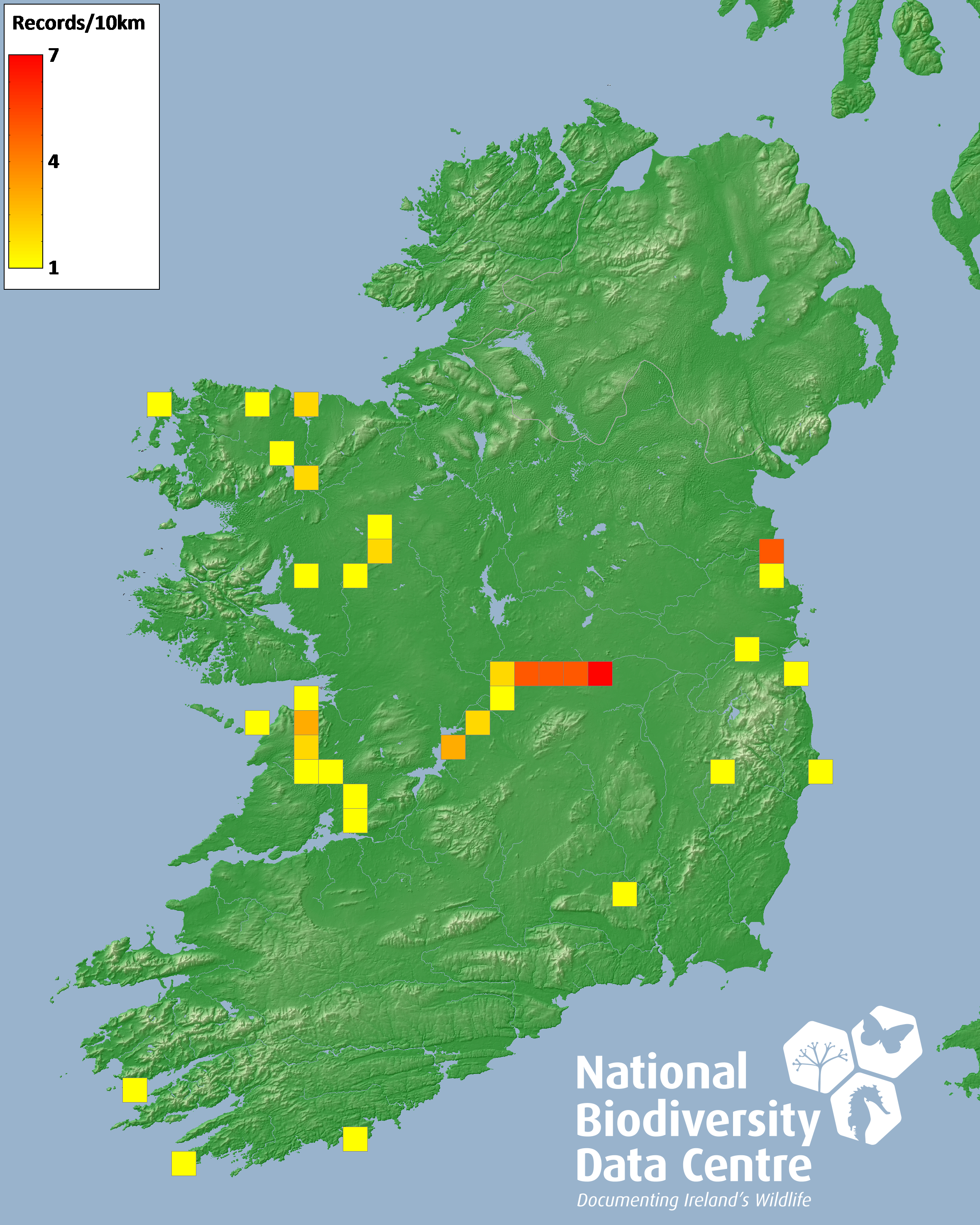 Distribution of the number of records recorded within each 10km grid square (ITM).Marine Map - 50km