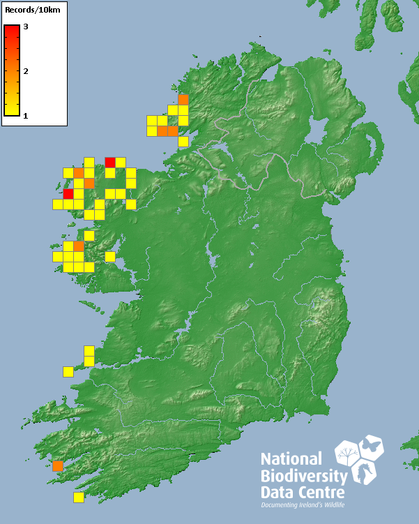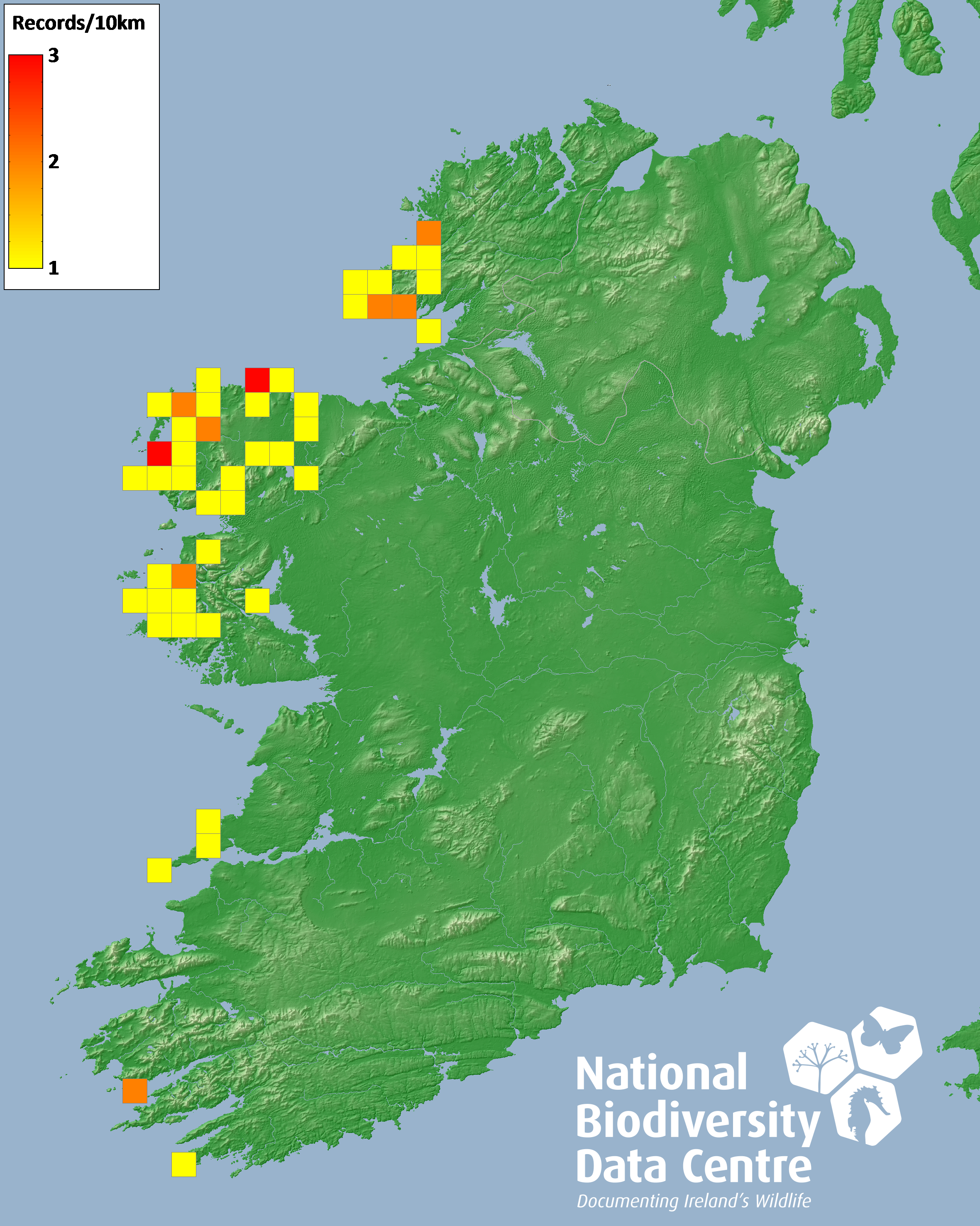 Distribution of the number of records recorded within each 10km grid square (ITM).Marine Map - 50km