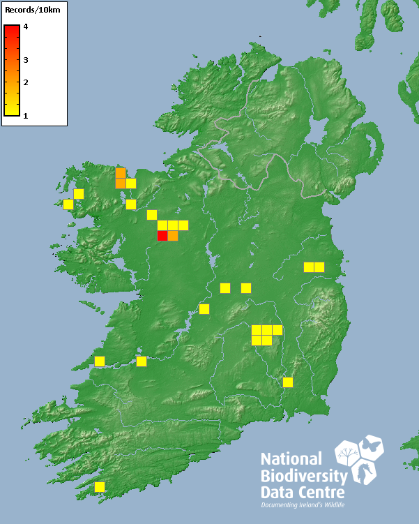 Distribution of the number of records recorded within each 10km grid square (ITM).Marine Map - 50km