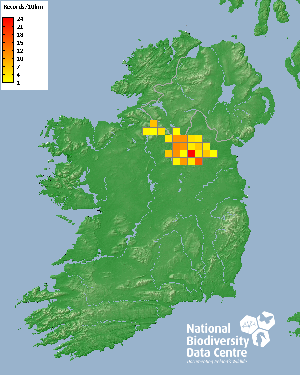 Distribution of the number of records recorded within each 10km grid square (ITM).Marine Map - 50km