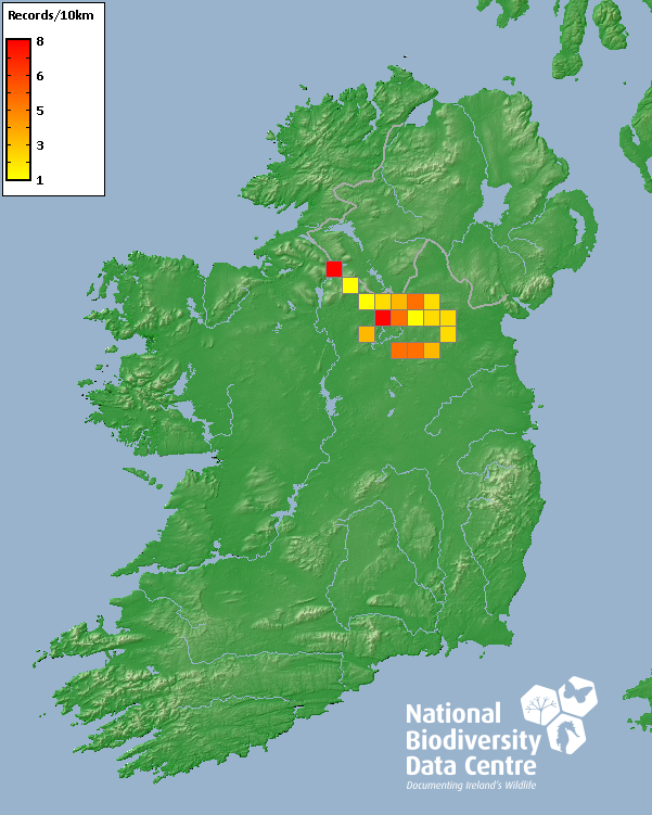 Distribution of the number of records recorded within each 10km grid square (ITM).Marine Map - 50km