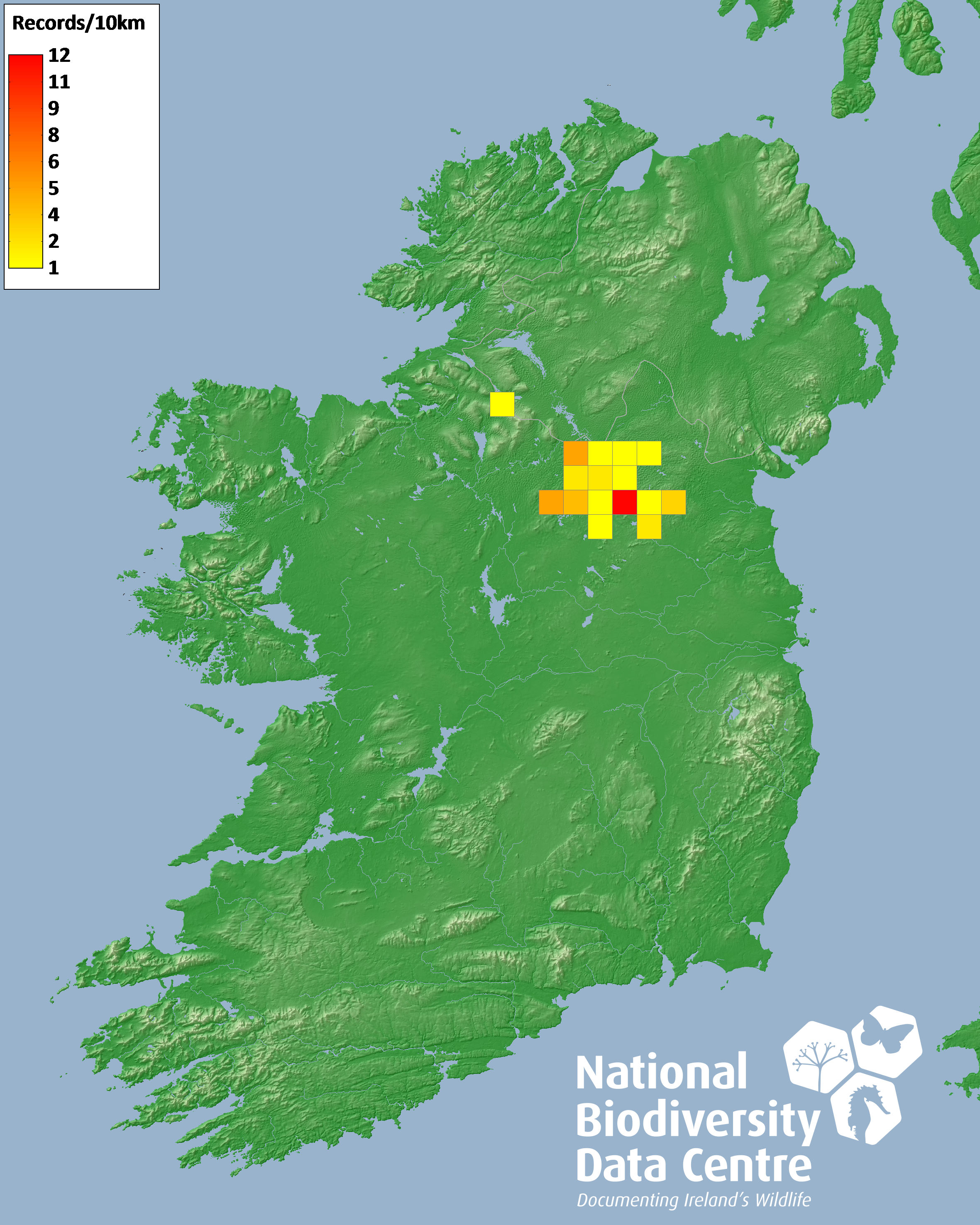 Distribution of the number of records recorded within each 10km grid square (ITM).Marine Map - 50km