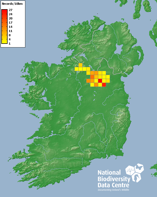 Distribution of the number of records recorded within each 10km grid square (ITM).Marine Map - 50km