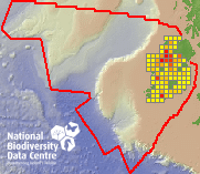 Distribution of the number of records recorded within each 10km grid square (ITM).Marine Map - 50km