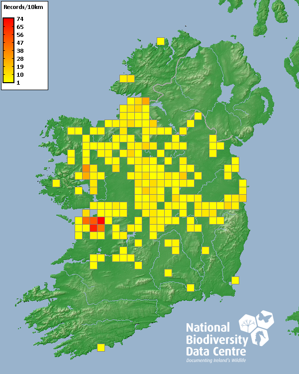 Distribution of the number of records recorded within each 10km grid square (ITM).Marine Map - 50km