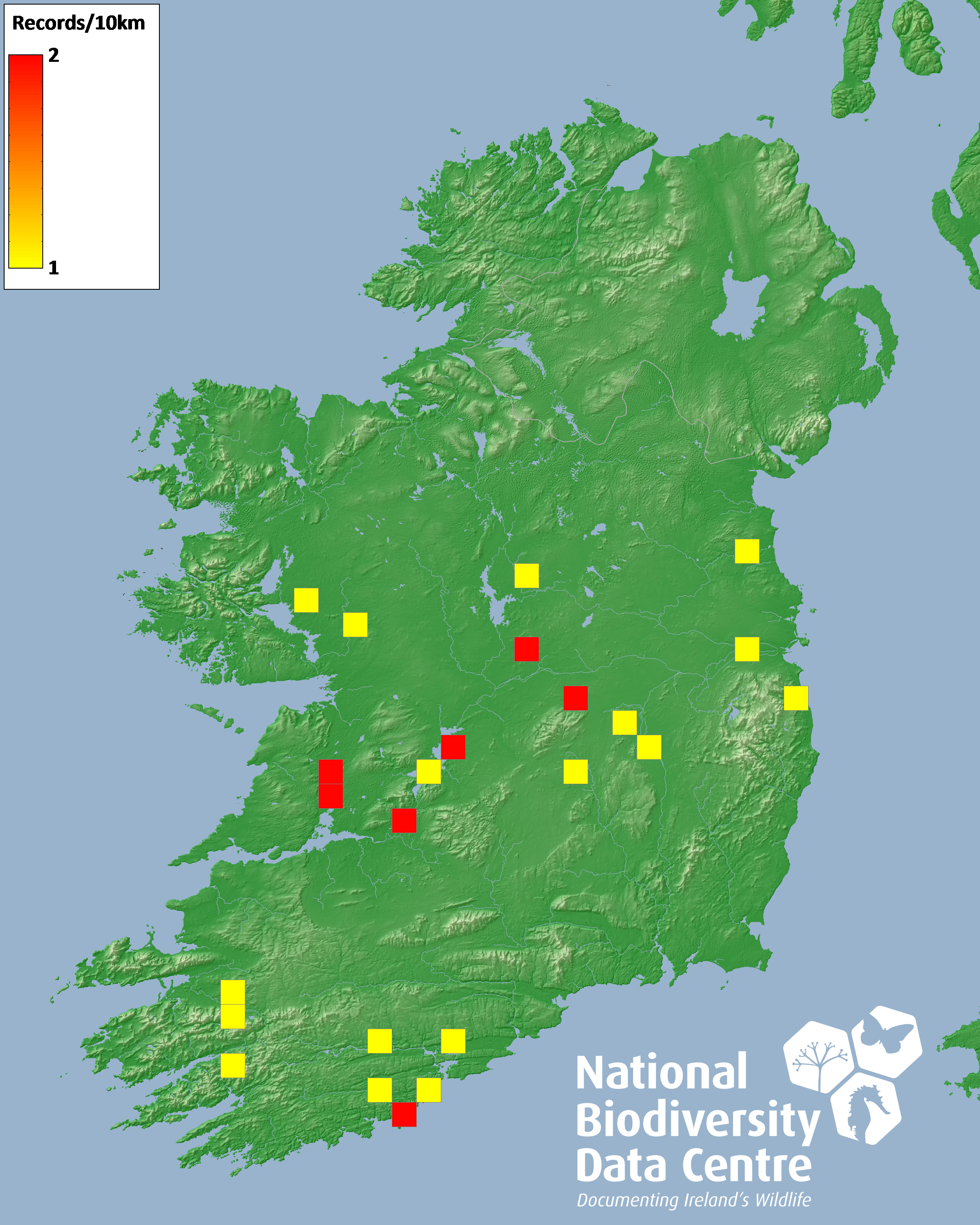 Distribution of the number of records recorded within each 10km grid square (ITM).Marine Map - 50km