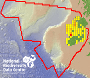 Distribution of the number of records recorded within each 10km grid square (ITM).Marine Map - 50km