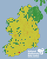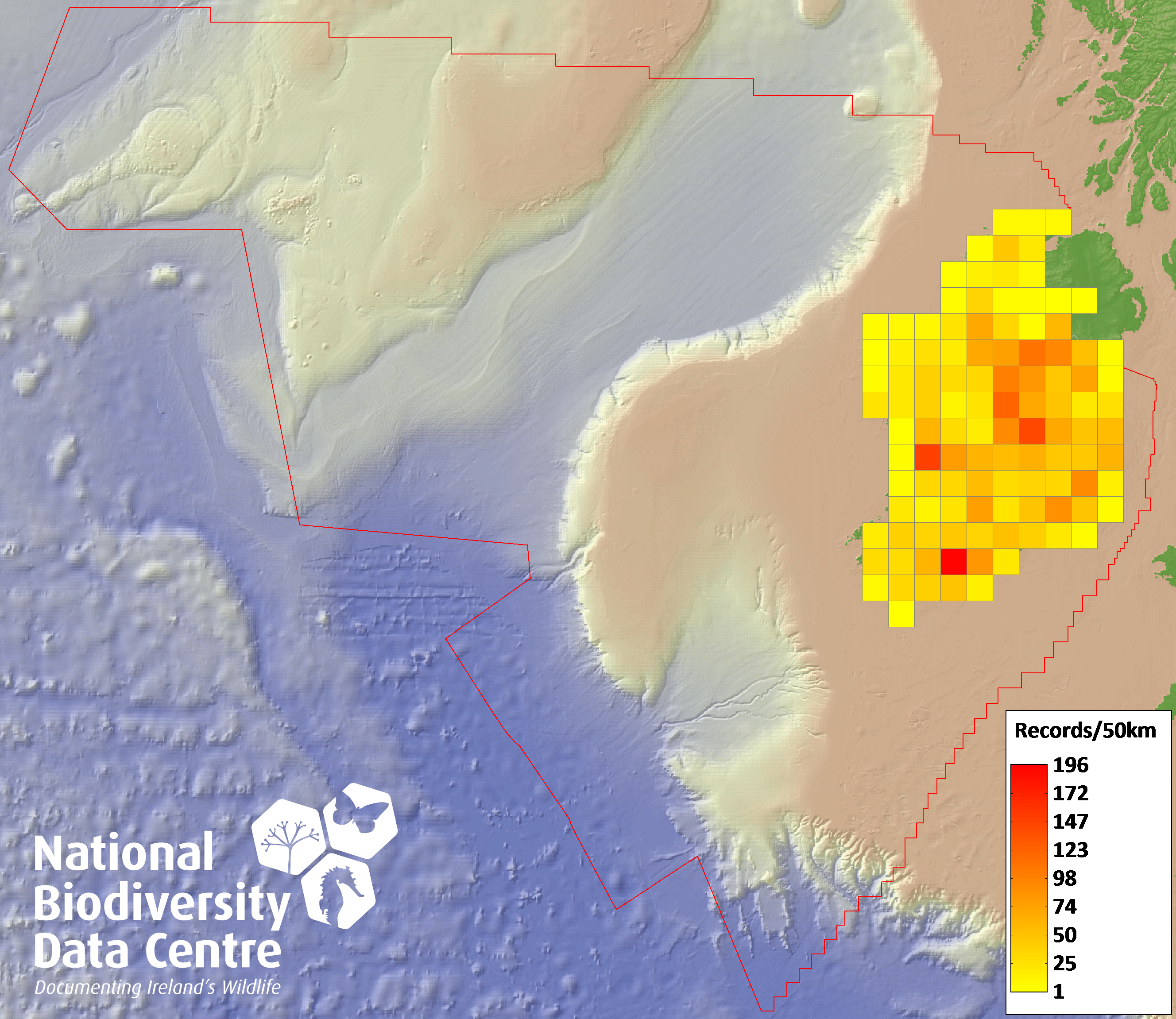 Distribution of the number of records recorded within each 10km grid square (ITM).Marine Map - 50km