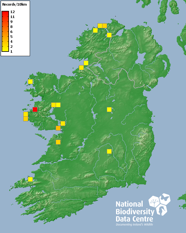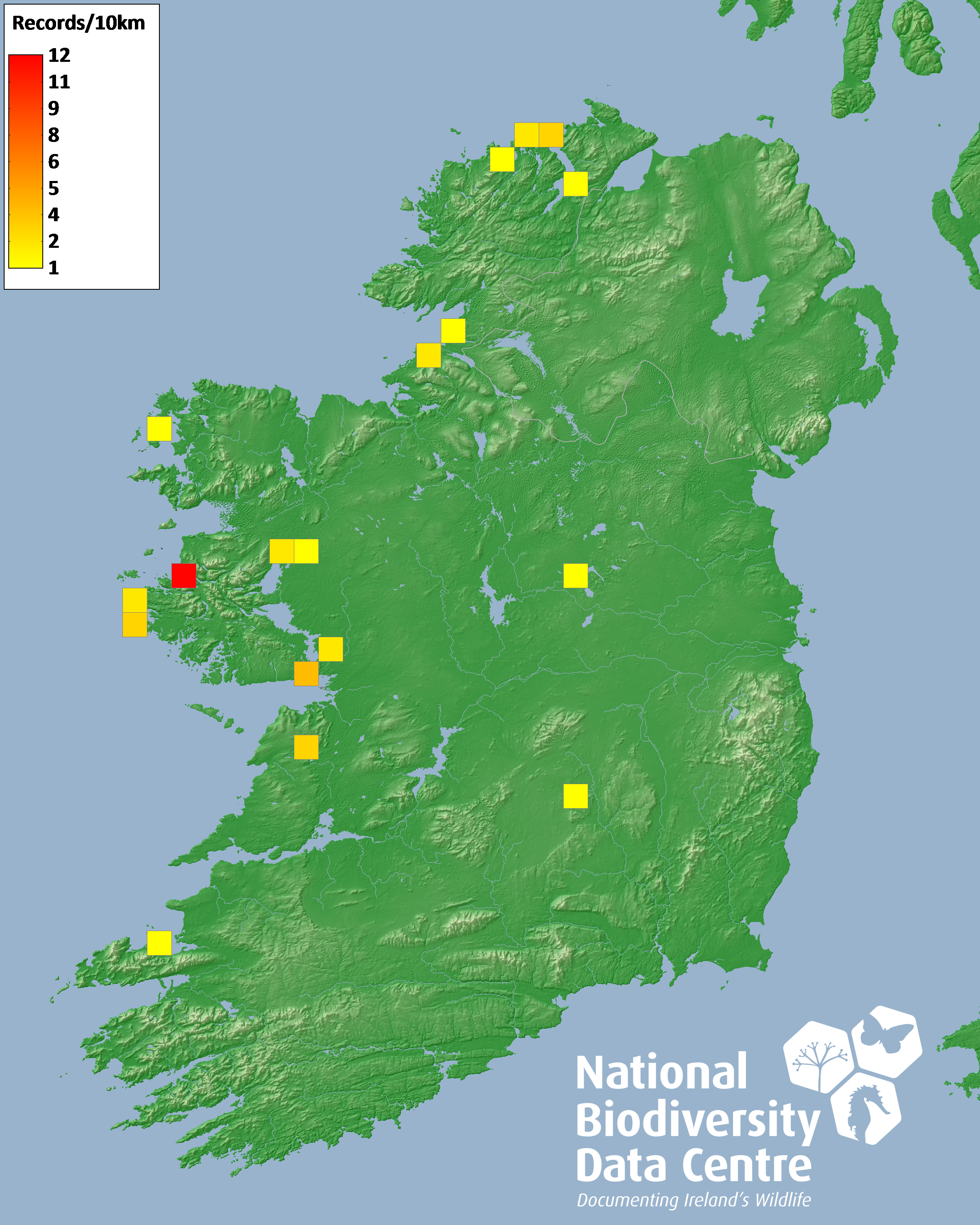 Distribution of the number of records recorded within each 10km grid square (ITM).Marine Map - 50km