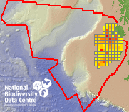 Distribution of the number of records recorded within each 10km grid square (ITM).Marine Map - 50km