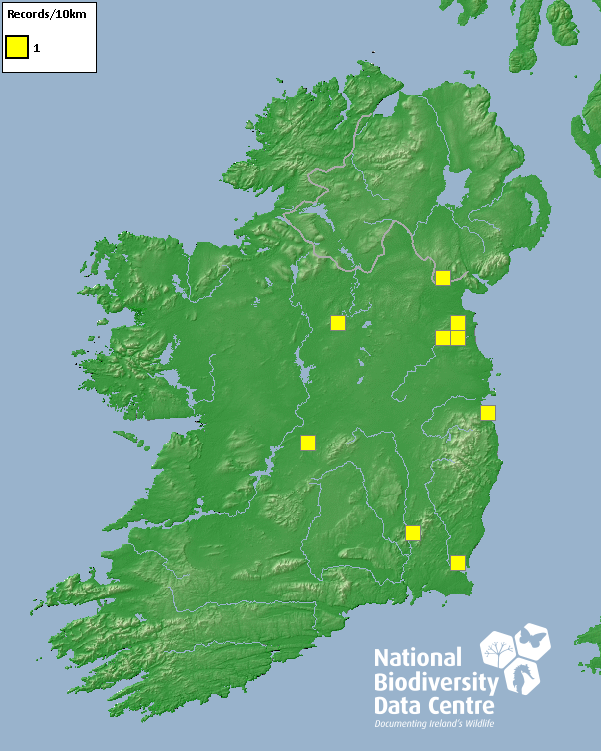 Distribution of the number of records recorded within each 10km grid square (ITM).Marine Map - 50km