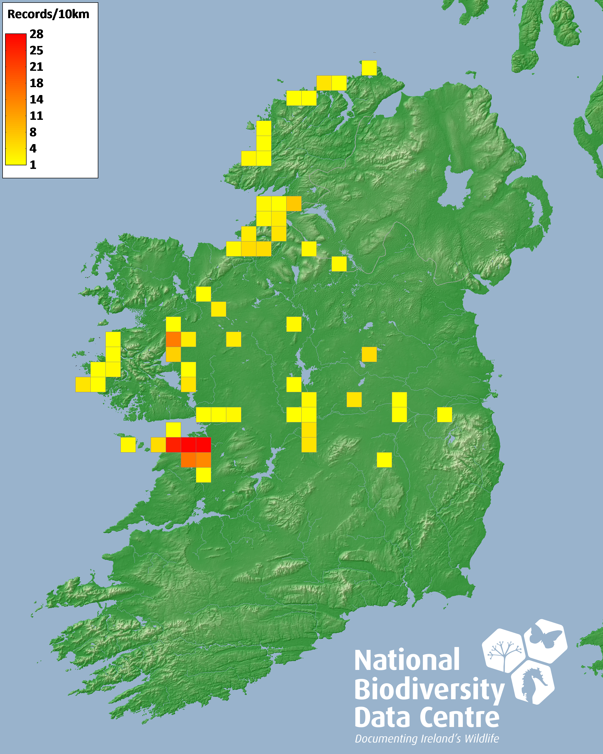 Distribution of the number of records recorded within each 10km grid square (ITM).Marine Map - 50km