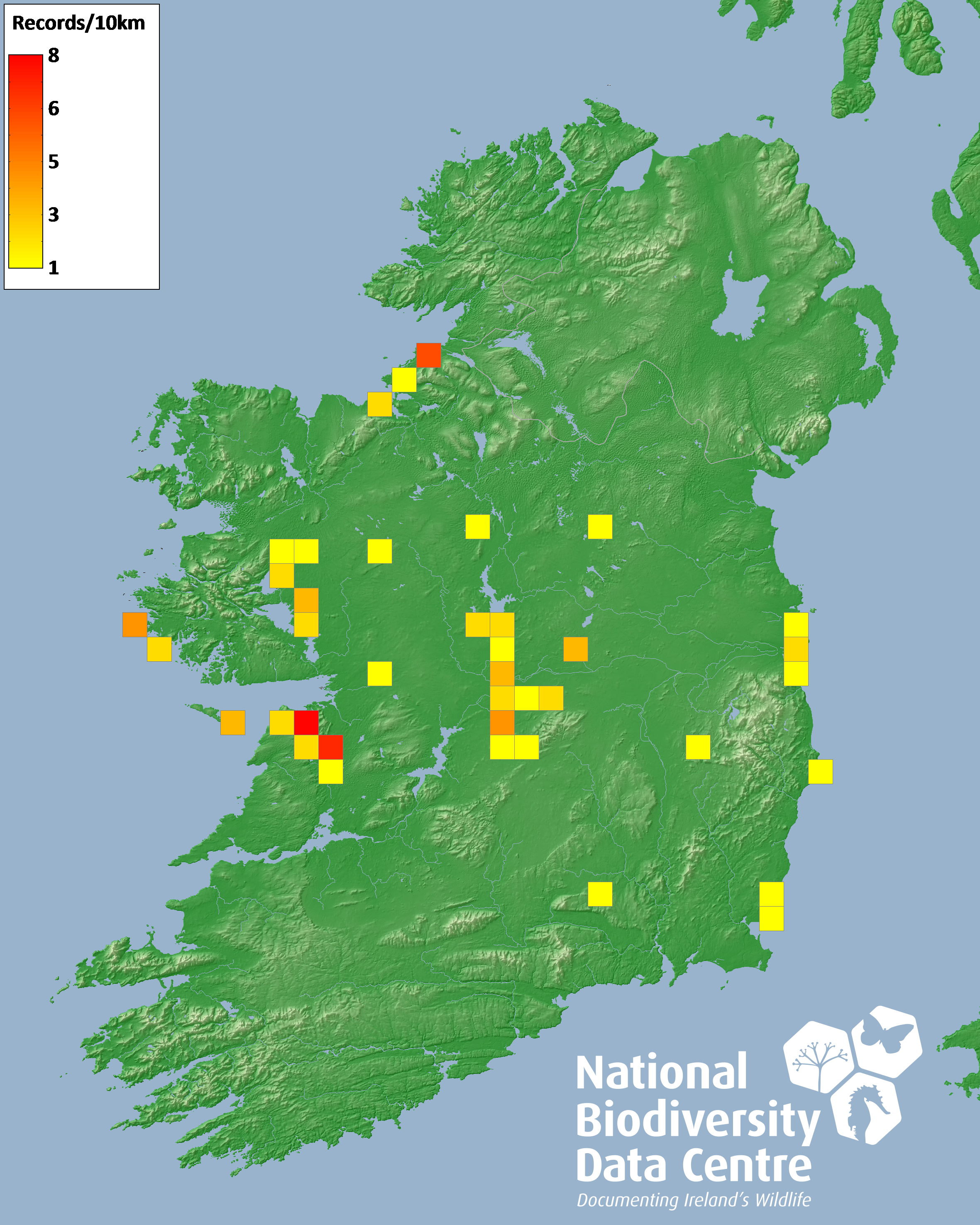 Distribution of the number of records recorded within each 10km grid square (ITM).Marine Map - 50km