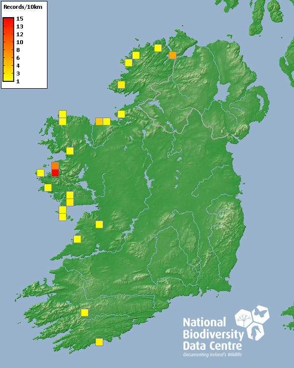 Distribution of the number of records recorded within each 10km grid square (ITM).Marine Map - 50km