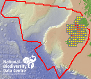 Distribution of the number of records recorded within each 10km grid square (ITM).Marine Map - 50km