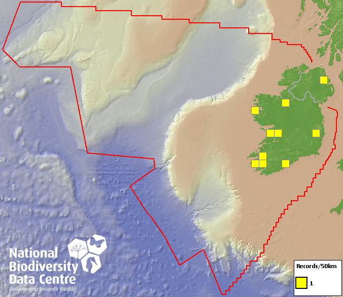 Distribution of the number of records recorded within each 10km grid square (ITM).Marine Map - 50km