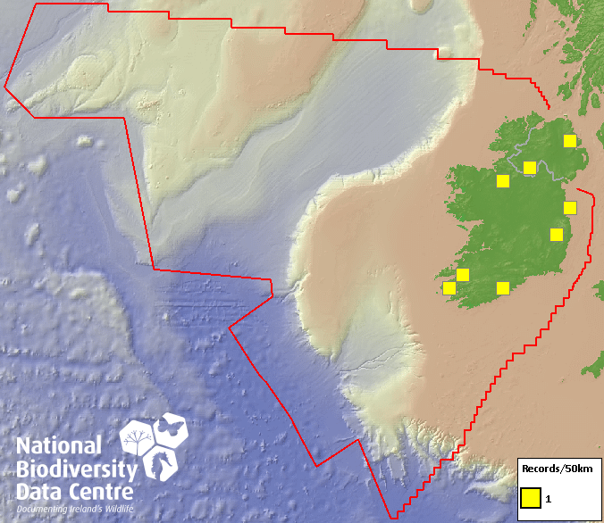 Distribution of the number of records recorded within each 10km grid square (ITM).Marine Map - 50km