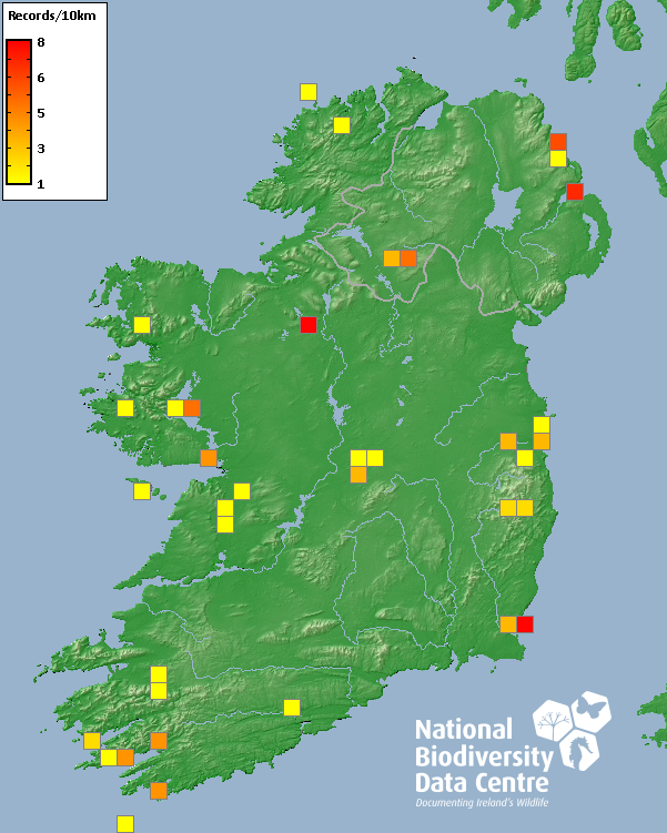 Distribution of the number of records recorded within each 10km grid square (ITM).Marine Map - 50km
