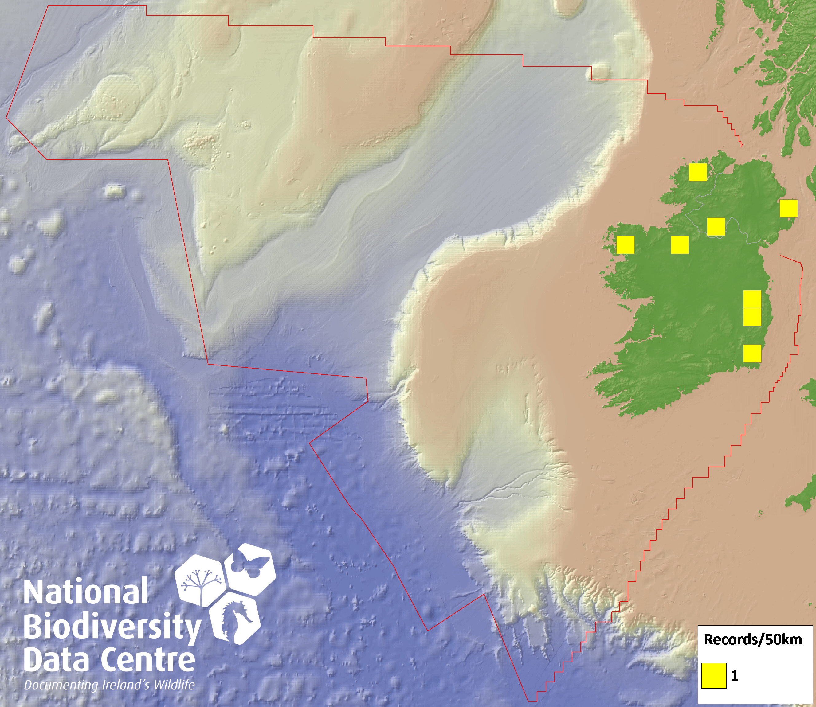 Distribution of the number of records recorded within each 10km grid square (ITM).Marine Map - 50km